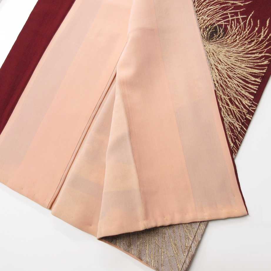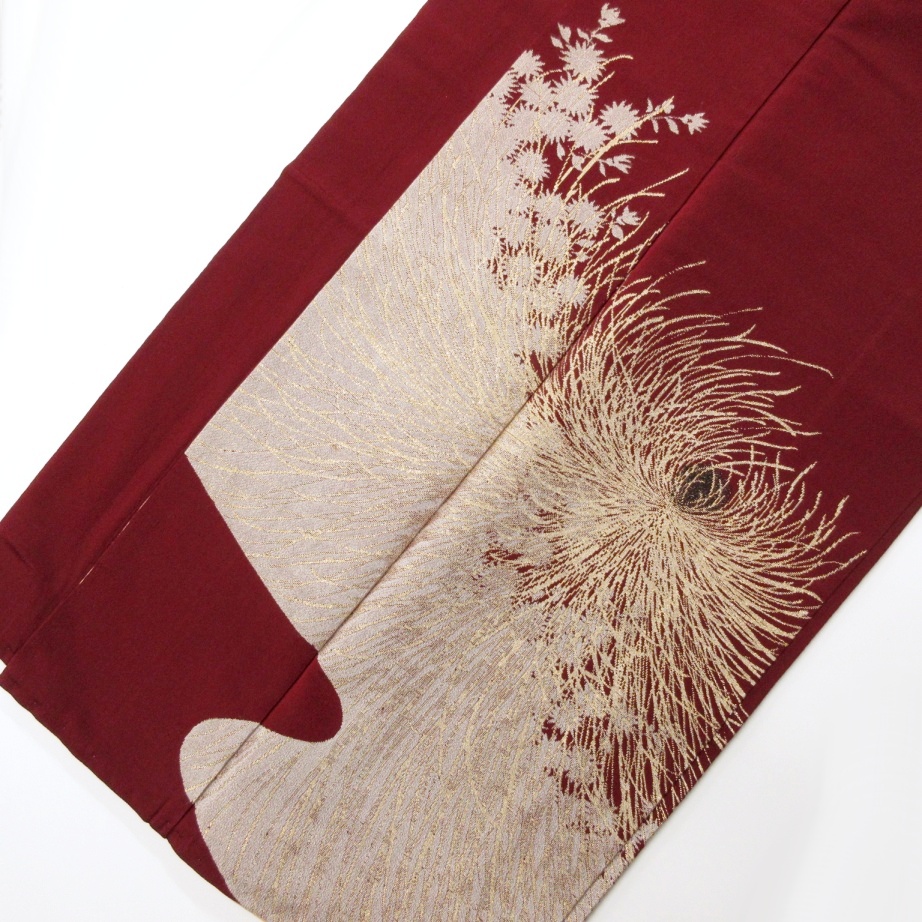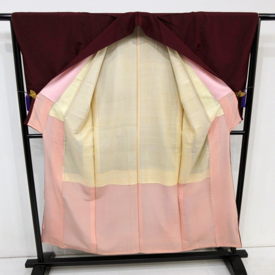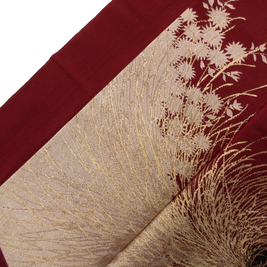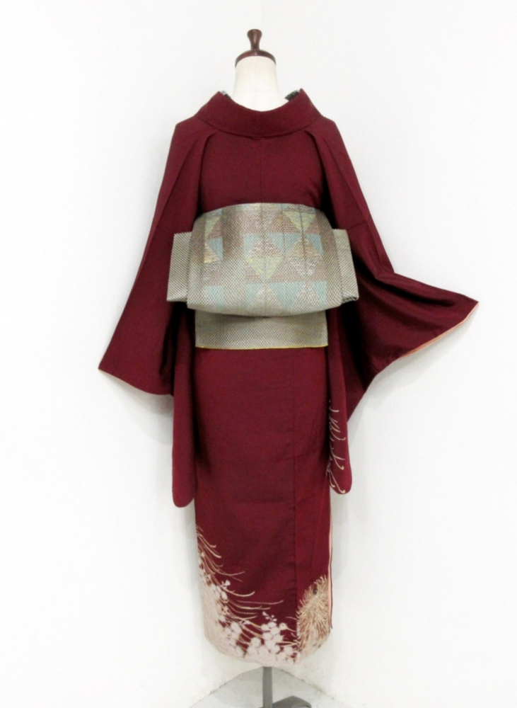 新着商品■雅星■レトロ!!ボルドー*糸菊♪お召し 付下げ 正絹袷 裄64丈151