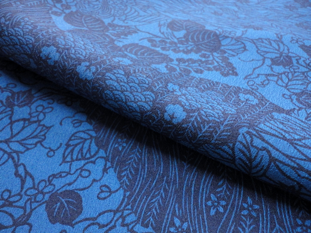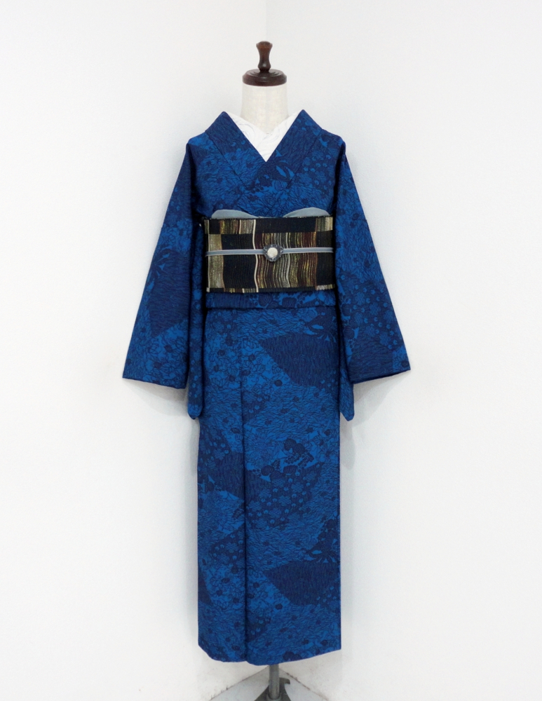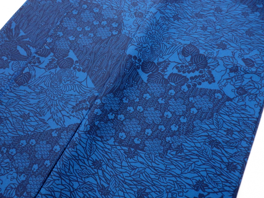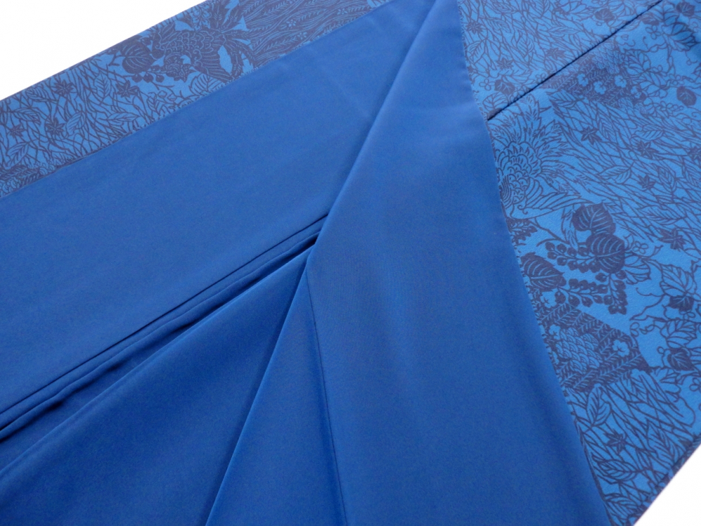 濃い鮮やかブルーに古典花模様のデザインが上品な印象♪