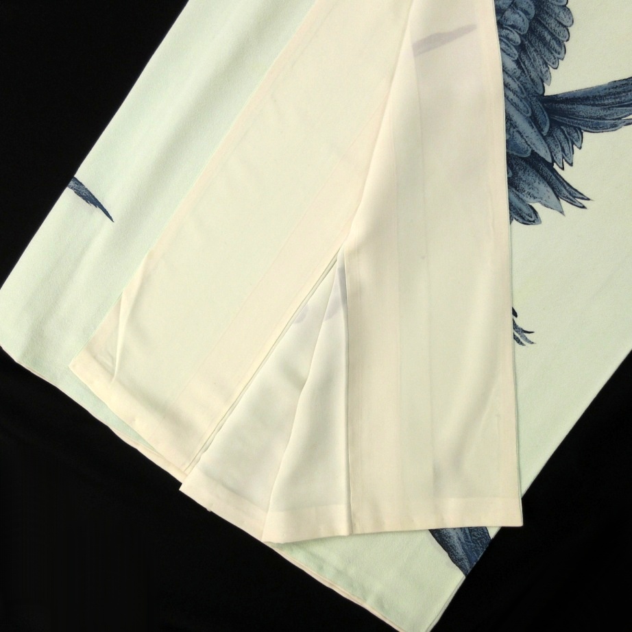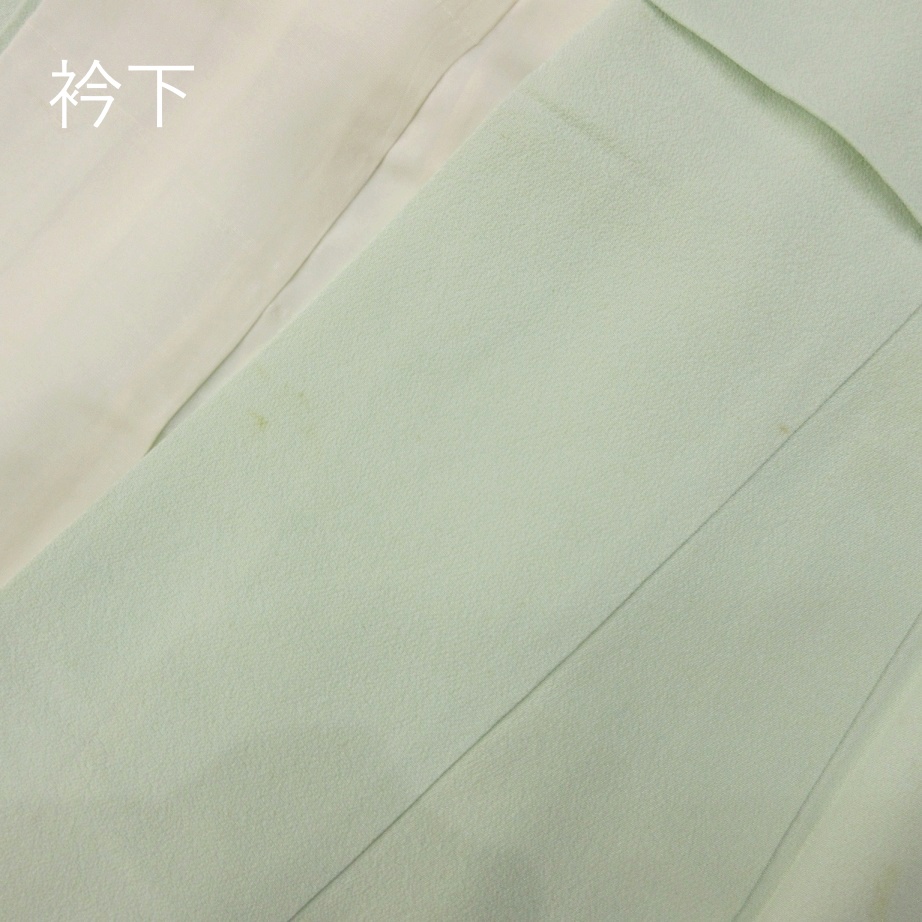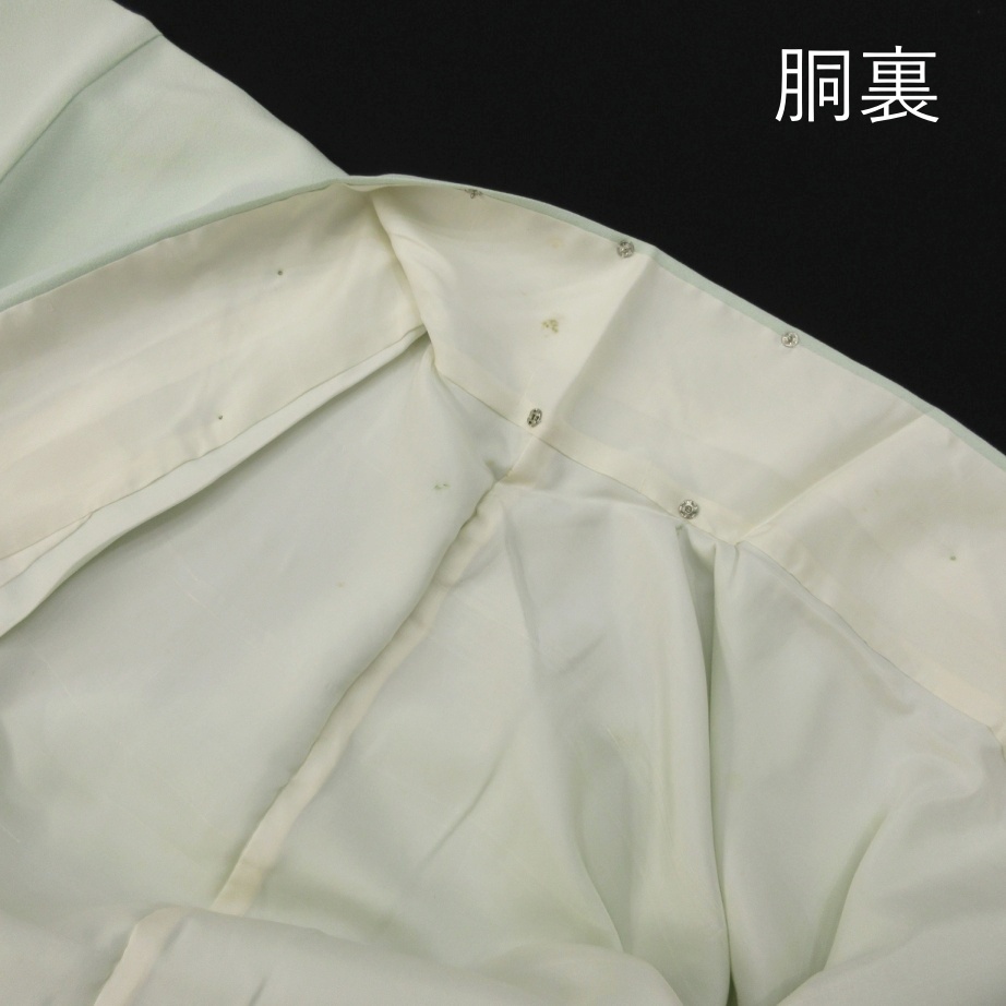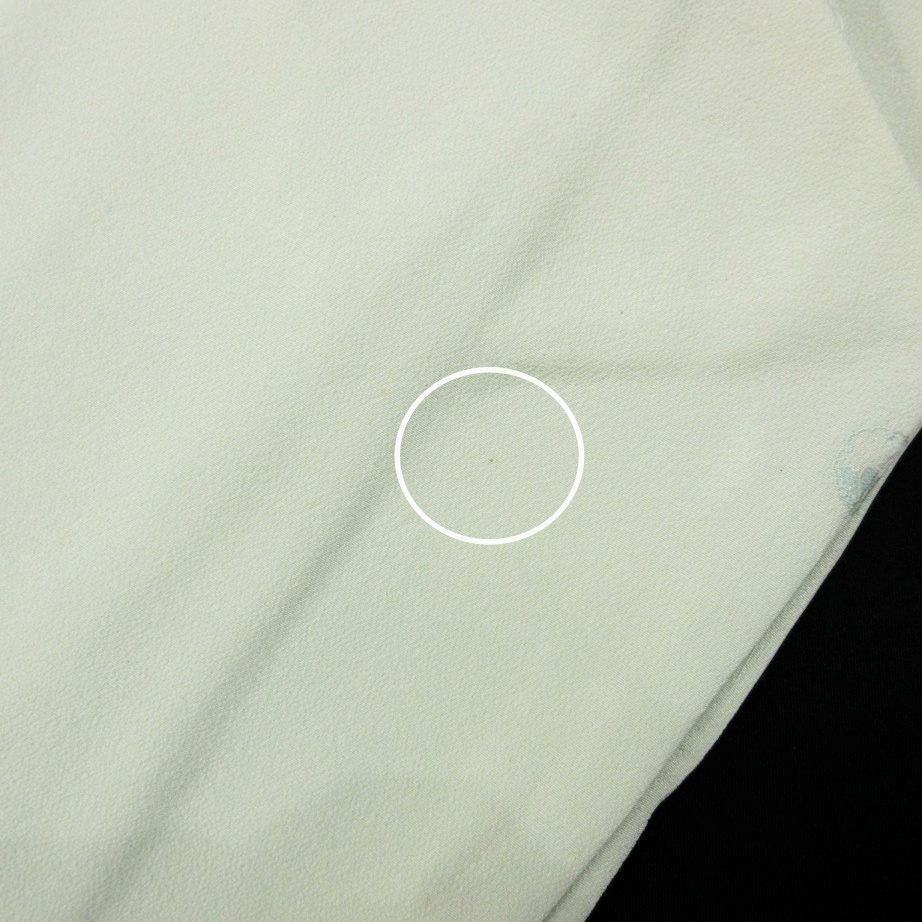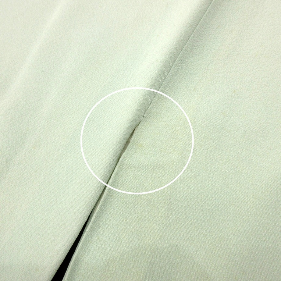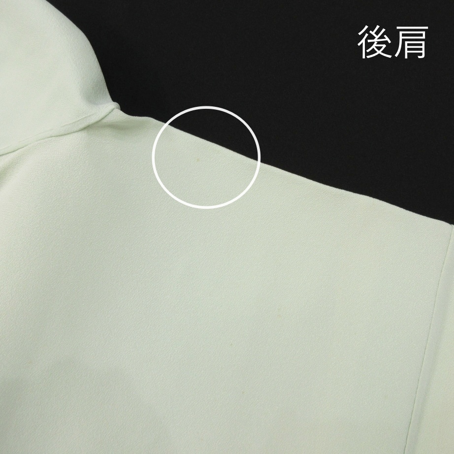 ■雅星■レトロ!!白緑*渡り鳥 一つ紋色留袖 正絹袷 裄63丈158ゆったり 販売価格 29,800円 (税込) 購入数 \送料無料/ カートに入れる この商品について問い合わせる お気に入り 特定商取引法に基づく表記 コーディネートで使用している商品 ■雅星■美品!!シルバー×ブルー暈し*焼箔 小梅の咲く風景♪正絹《袋帯》 34,800円(税込) ★雅星本店オリジナル★新品!!プラチナ*シマシマ 銀通し 帯揚げ 正絹 【クリックポスト発送】 15,400円(税込) ★雅星本店オリジナル★新品!!プラチナ*帯締め 房付き四分紐 正絹【クリックポスト発送】 14,800円(税込) 商品詳細 状態ランク: ★★★ しなやかな手触りで落ち感があります。 白っぽいごく淡い緑地に、渡り鳥が描かれた大胆なデザイン。 縫いの一つ紋入りの色留袖ですが、ややセミアンティーク寄りなので、 女子会やカジュアルパーティなどでお気軽にお楽しみください♪ 《袷・広衿》身長153〜163cm位までのゆったりサイズの方にオススメです。 画像のような細かな薄シミや点シミがありますが、いずれも濃さは軽度なので撮影時は気になりませんでした。 ぐっとお値下げしていますので、時代物に慣れた方・色柄を気に入って下さった方に是非! 着物のみの価格で、帯・小物は含まれておりません。 サイズ・素材 裄 63cm 肩身丈 158cm 袖丈 49cm 袖幅 32cm 前幅 27cm 後ろ幅 30.5cm 内揚げ 4cm 縫込み(袖側) 3cm 縫込み(肩側) 4cm 素材 正絹 状態ランクについて ★★★★★ 超美品・新品・未使用品です。 ★★★★ 中古品ですがダメージの無いお品です。 ★★★ 薄ジミなどがありますが着用時には目立ちません。 ★★ 工夫次第で十分着用可能なお買い得品です ★ 大きめのシミがありますので、リメイク材料等にどうぞ。 _an _fo